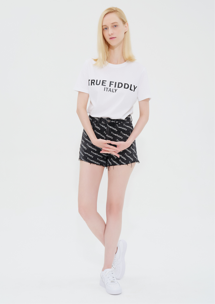 TRUE FIDDLY LOGO 牛仔短褲 - 黑色