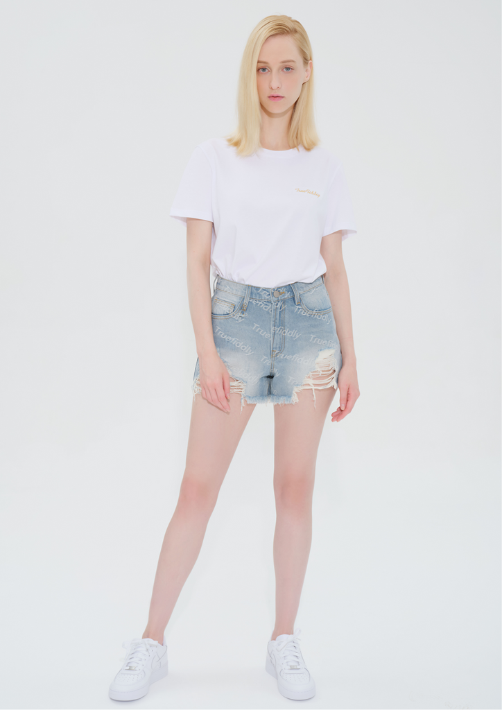 TRUE FIDDLY 刺繡小LOGO T-SHIRT - 白