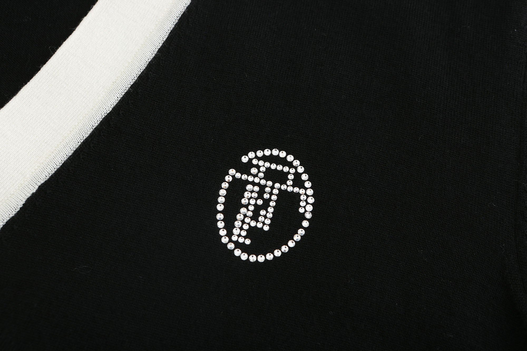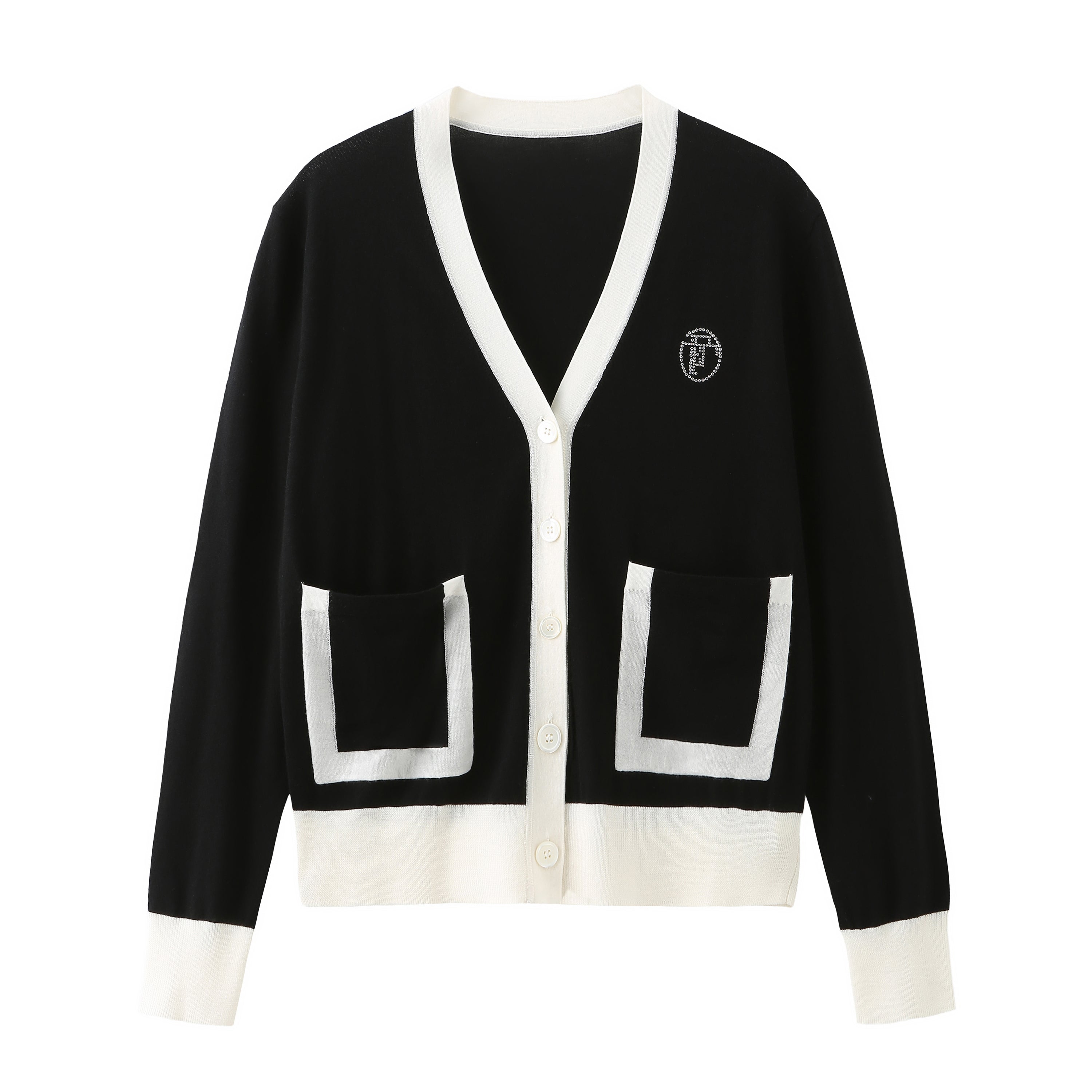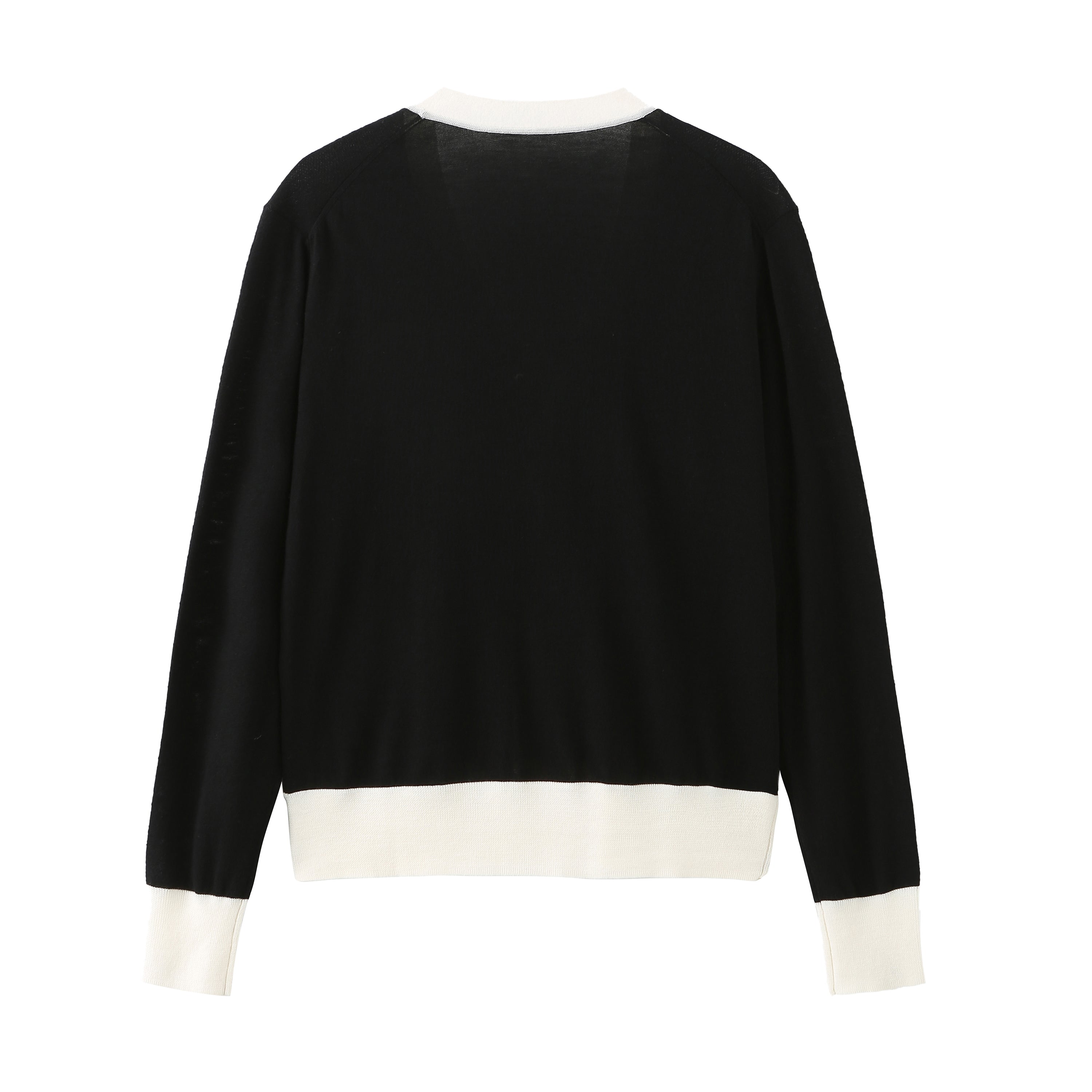 TRUE FIDDLY水鑽LOGO山羊絨針織外套-黑白色