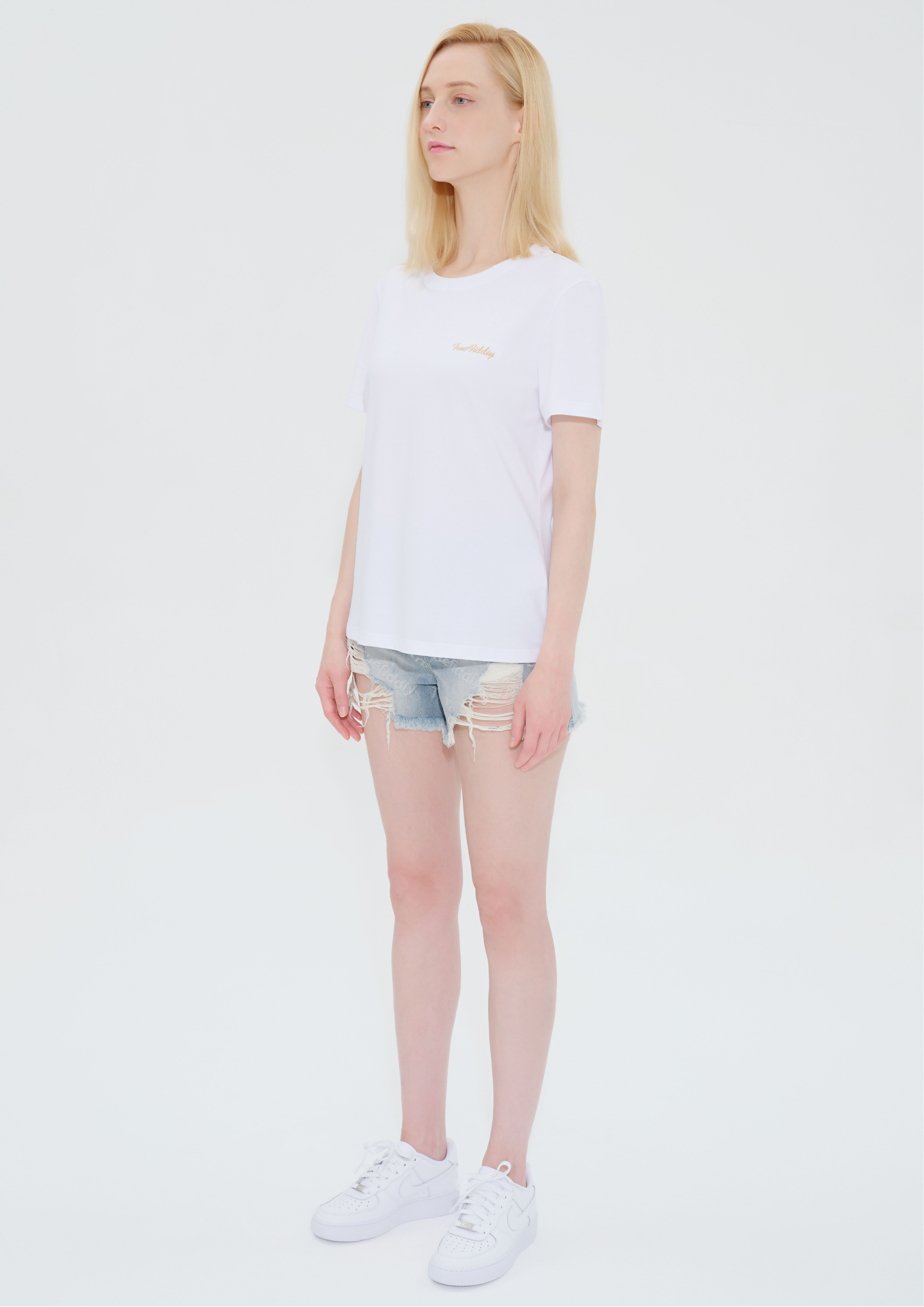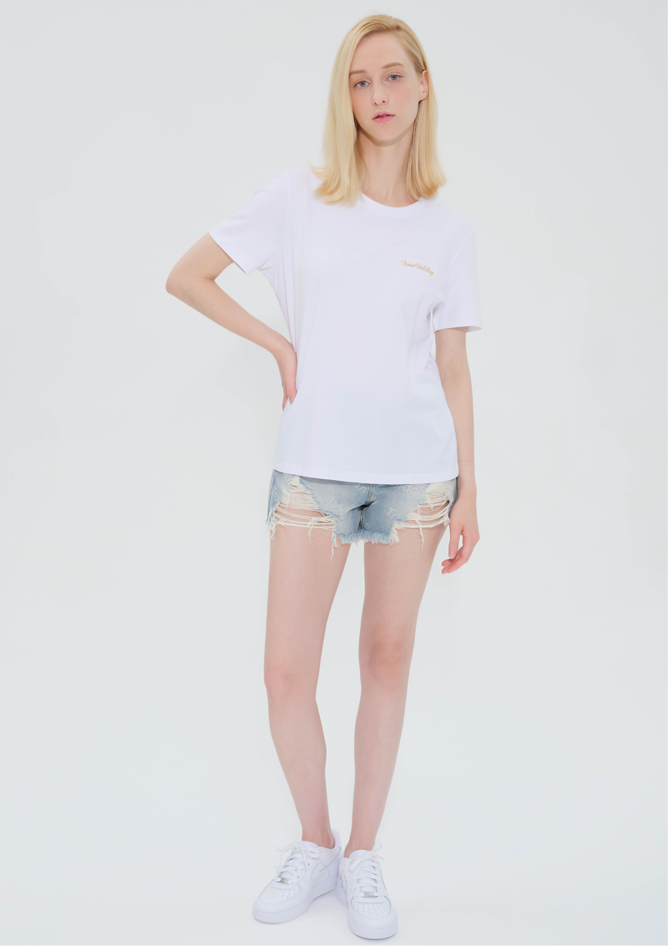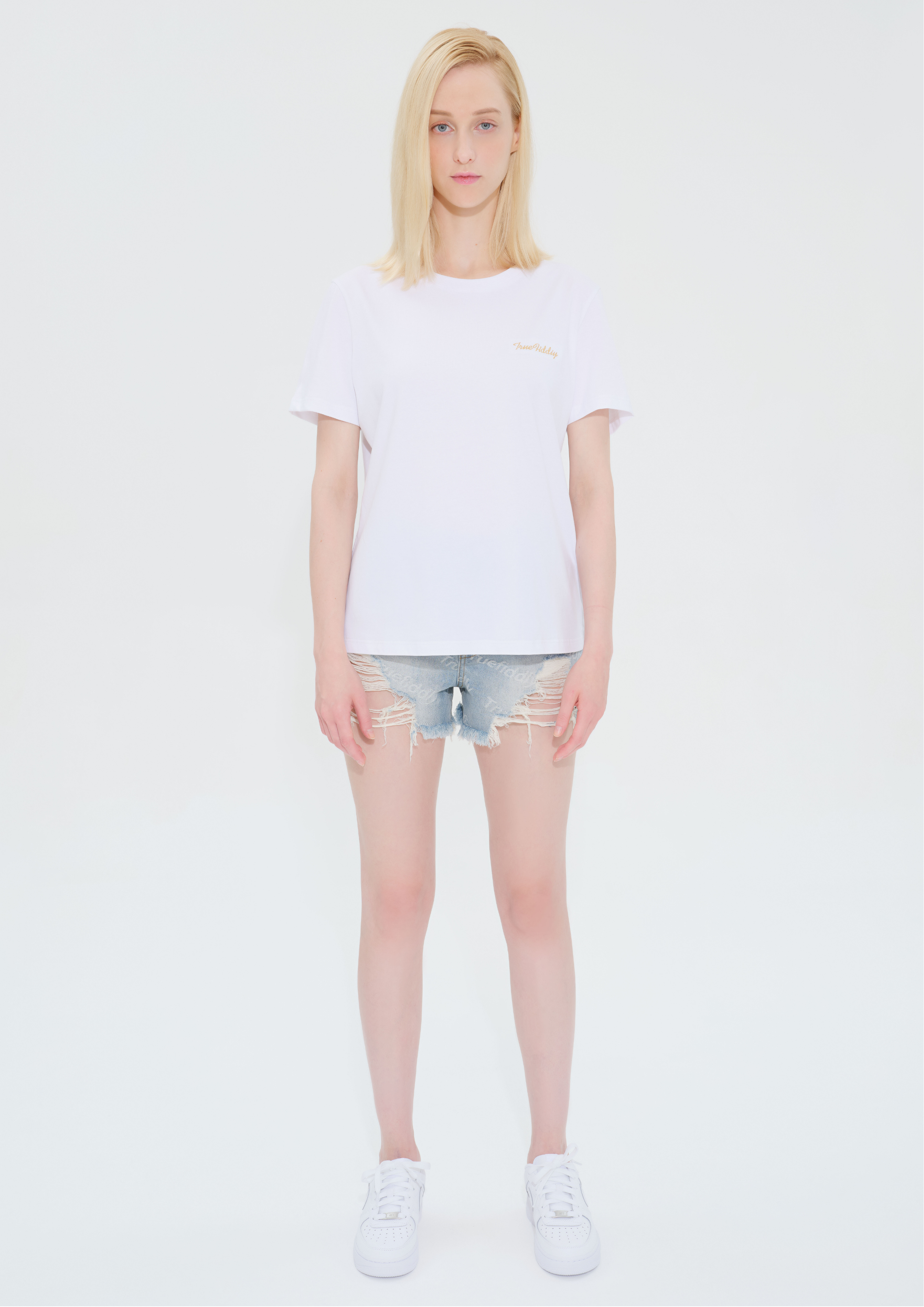 TRUE FIDDLY 刺繡小LOGO T-SHIRT - 白