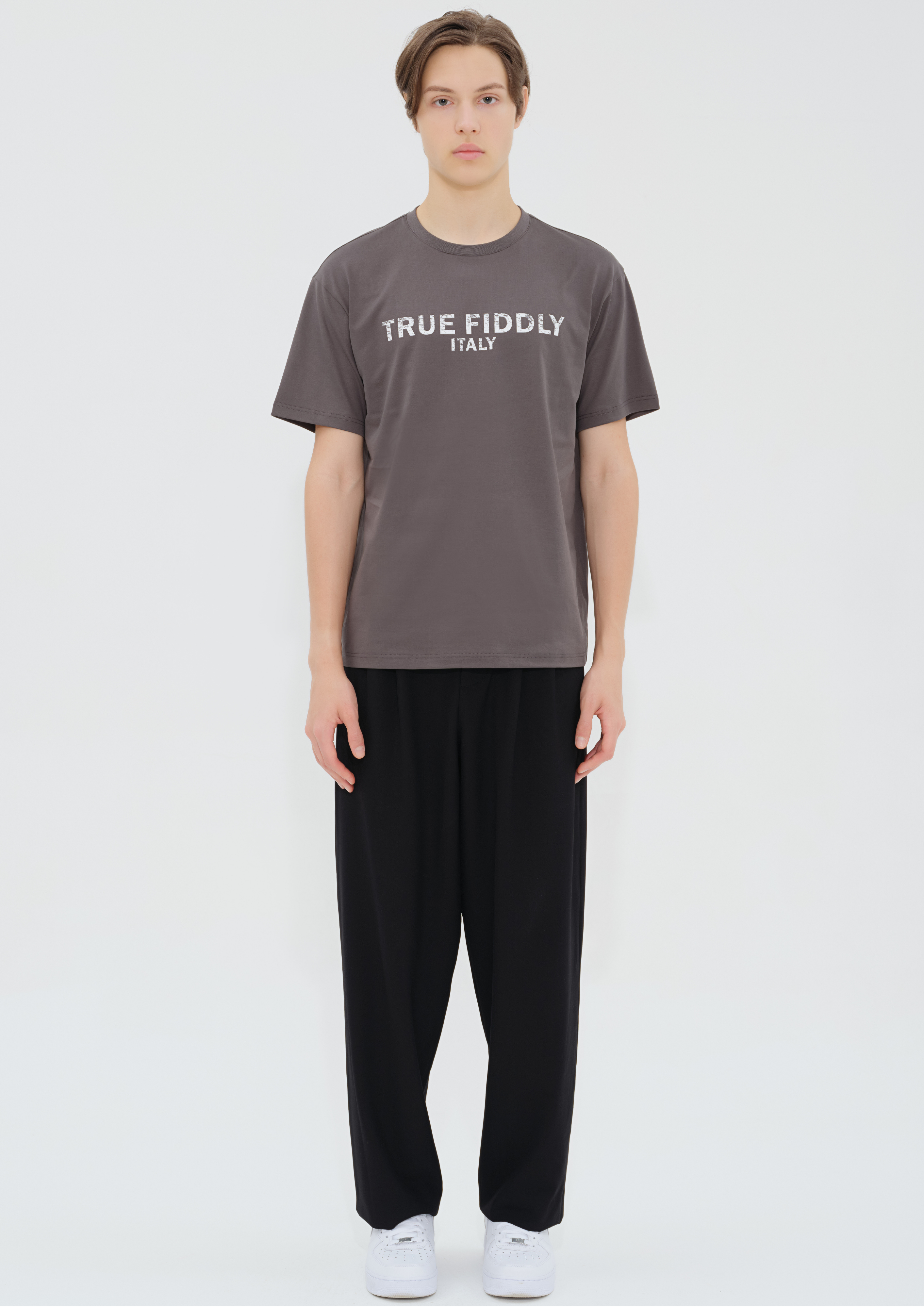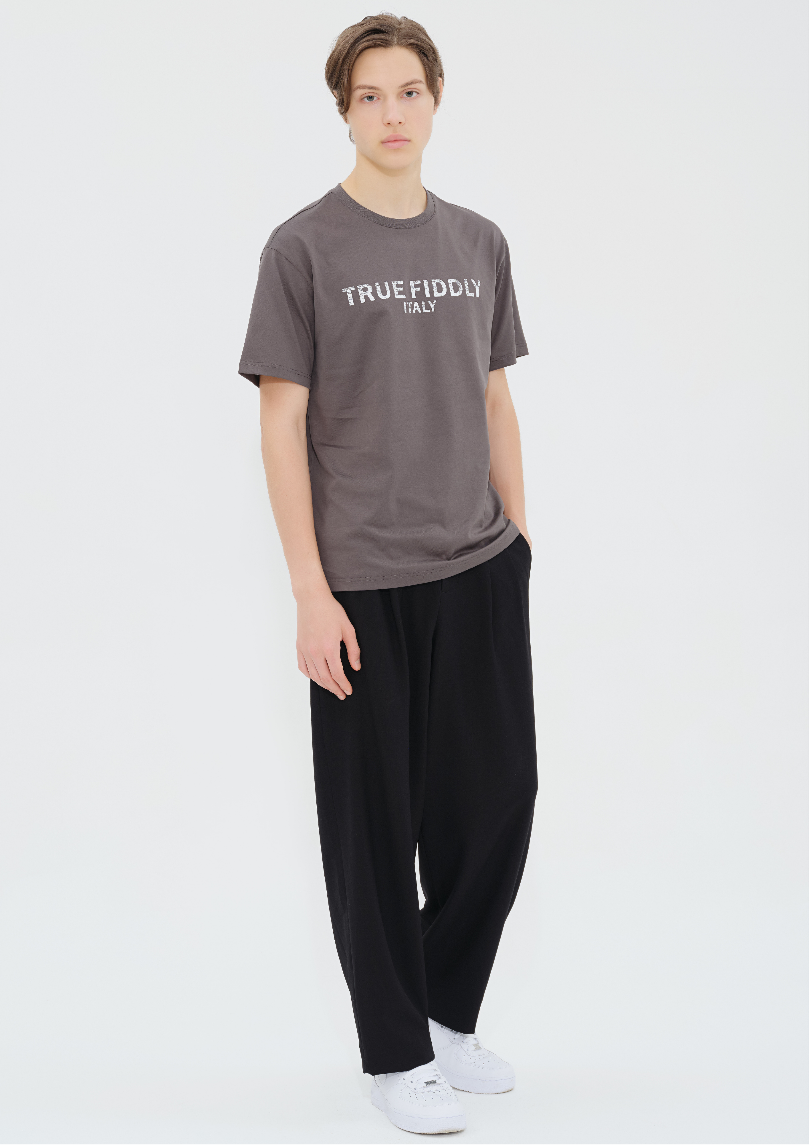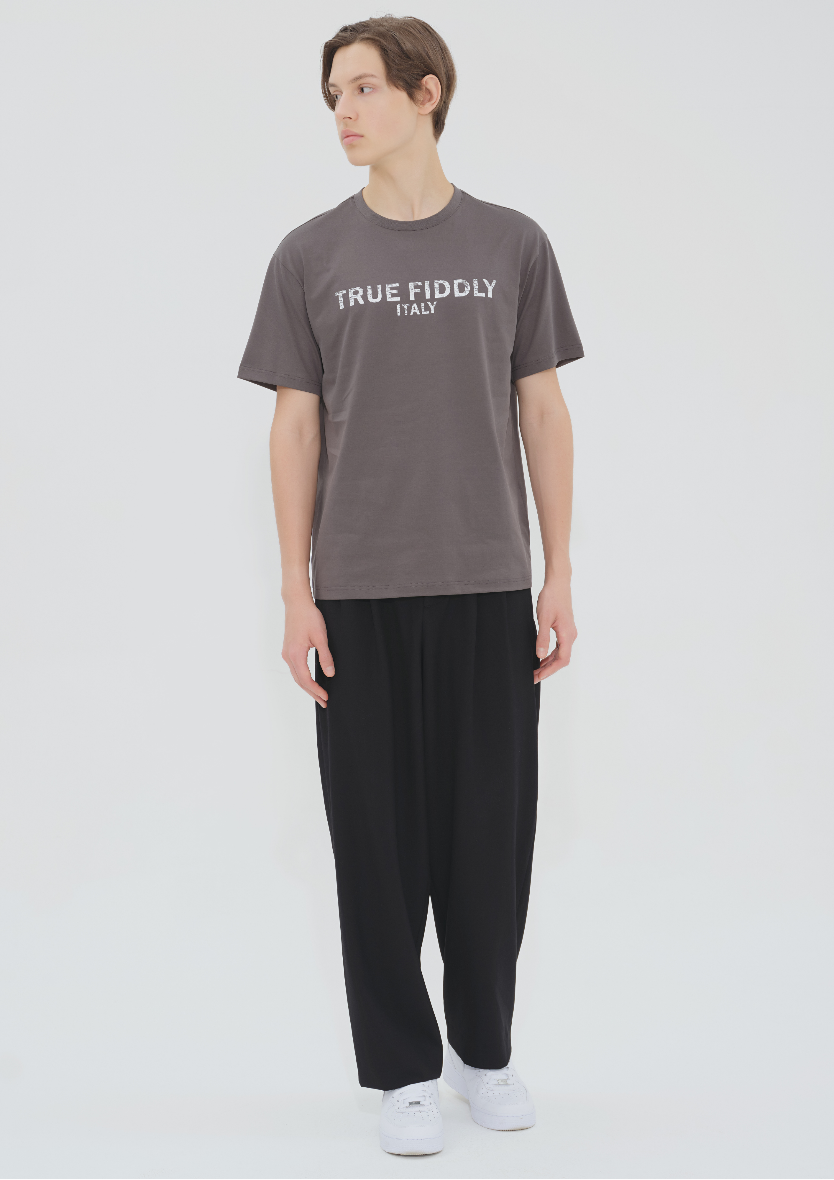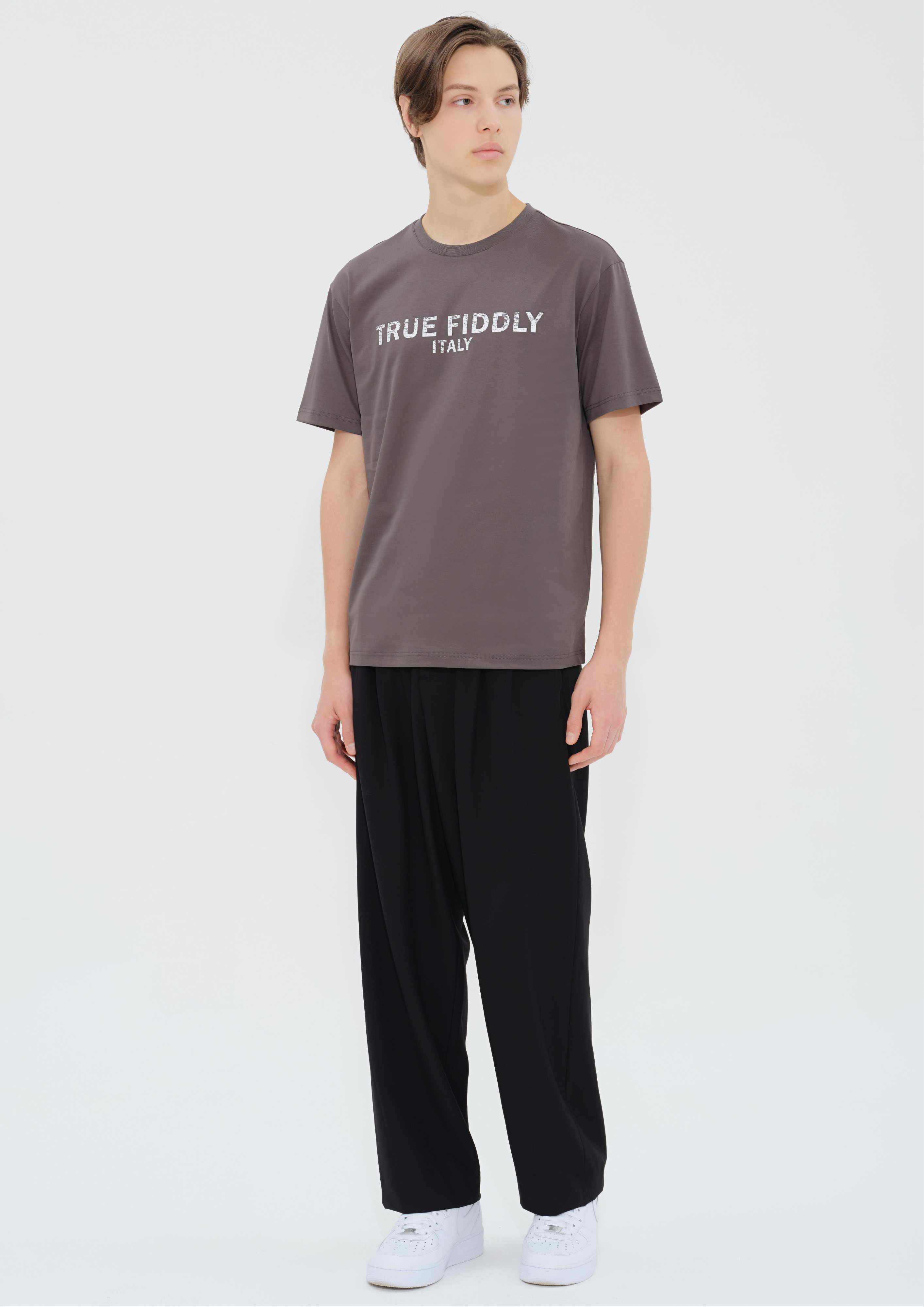 產品詳情和尺碼• 灰色短袖 T 恤• 回收棉織物• 羅紋領• 100%純棉• 機洗• 中國製造