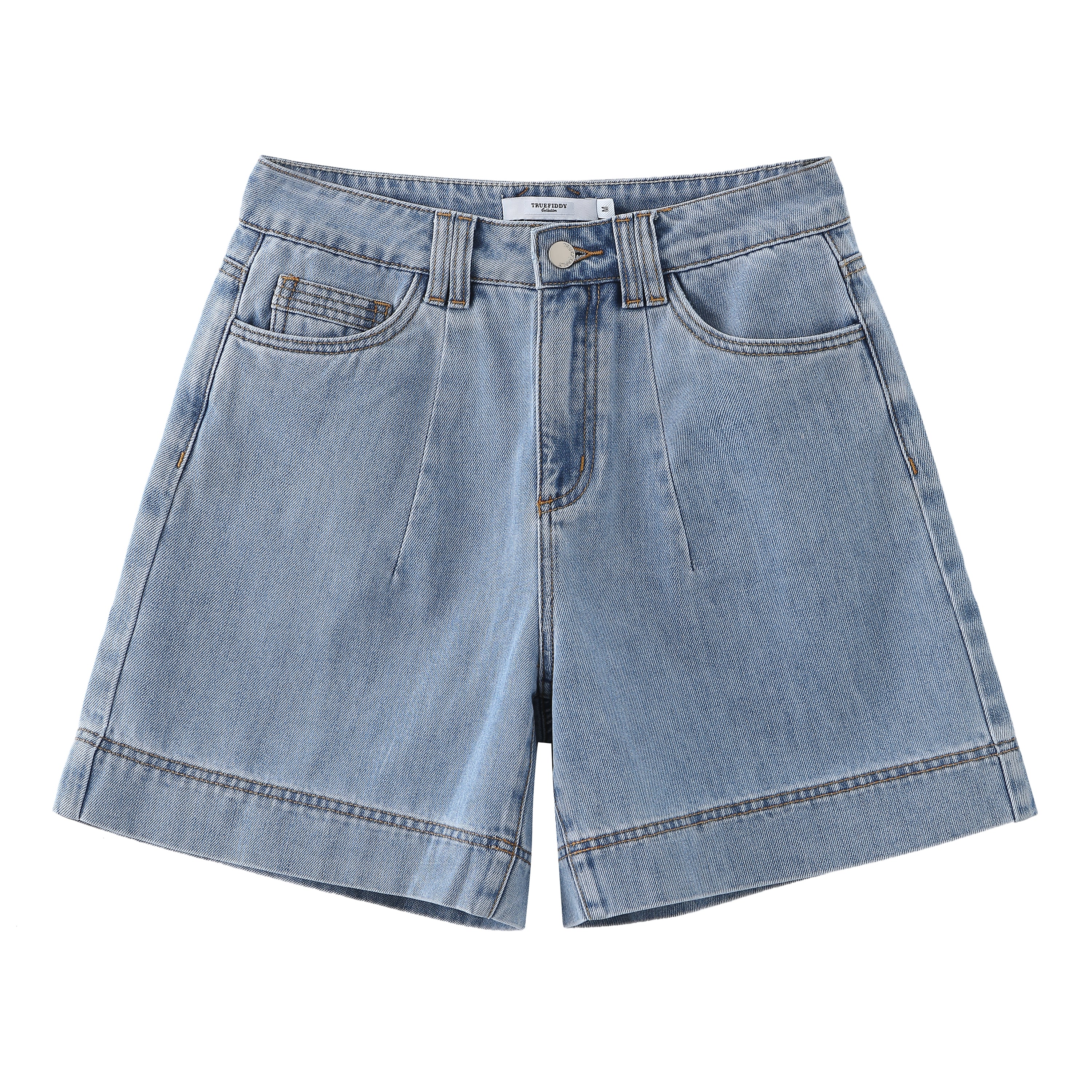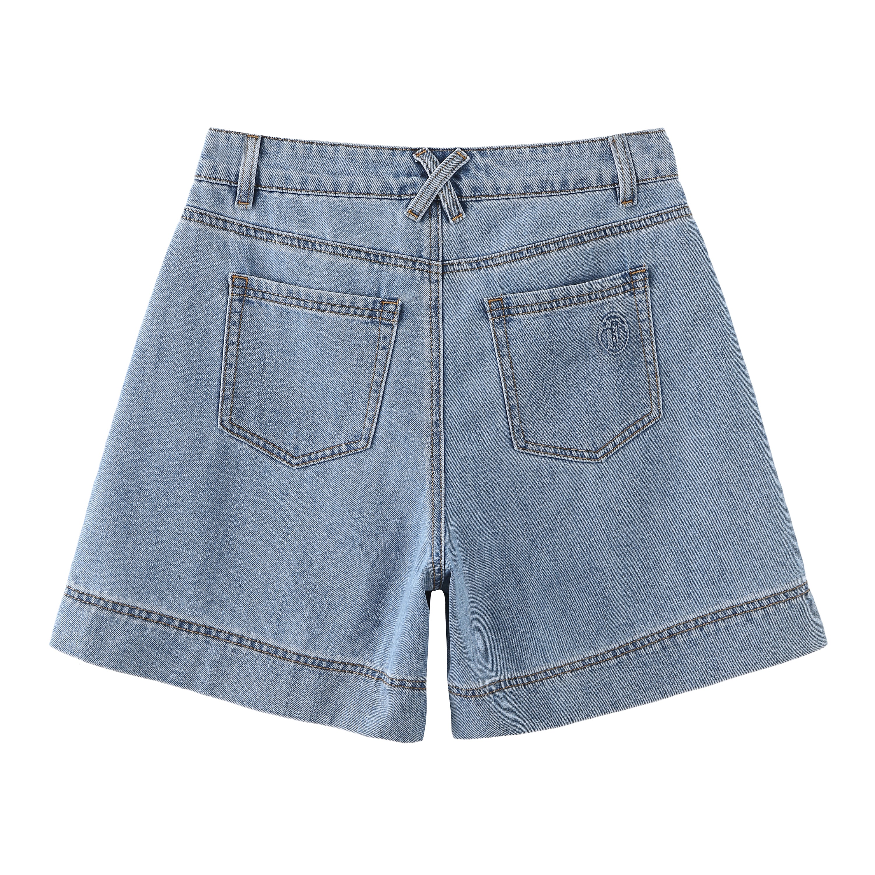 產品詳情和尺碼• 藍色牛仔短褲• 回收棉織物• 高腰• 100%純棉• 機洗• 中國製造